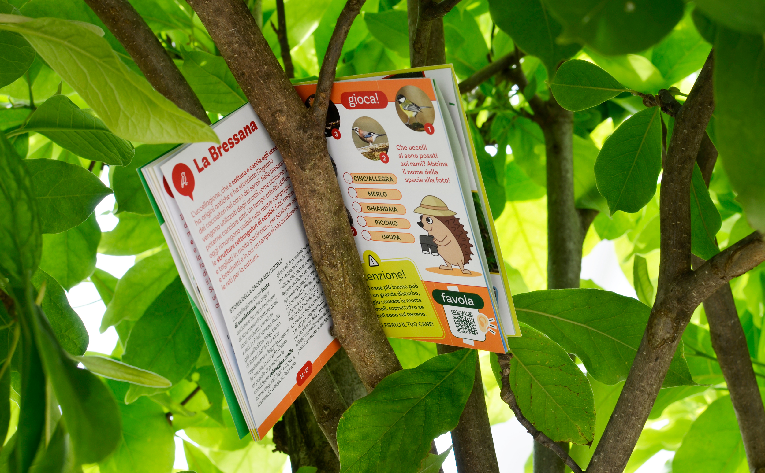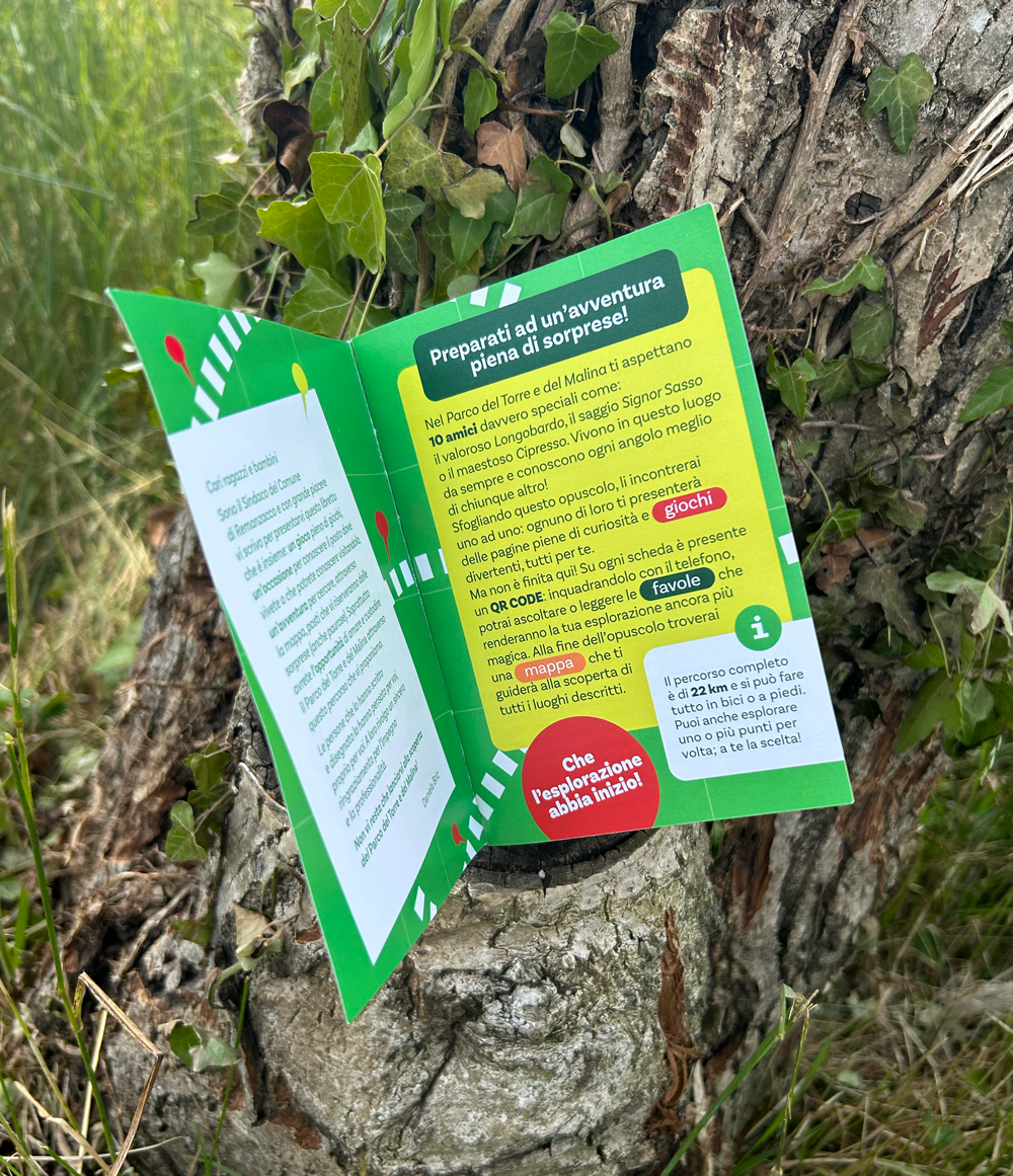 Il progetto grafico è stato pensato appositamente per i più giovani, con un’impaginazione chiara, vivace e intuitiva, capace di rendere i contenuti accessibili e stimolanti, ispirando curiosità e voglia di esplorare. Abbiamo dato un volto ai protagonisti delle fiabe, figure ispirate alla natura e alla storia del luogo, per rendere ogni incontro un’esperienza visiva e narrativa coinvolgente. Felici di aver tradotto in immagini questo viaggio tra biodiversità, storie e scoperta del territorio.