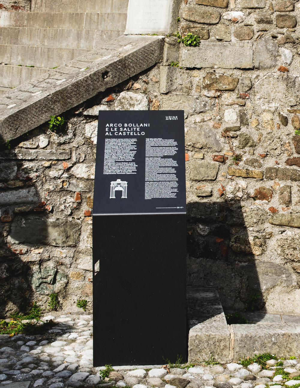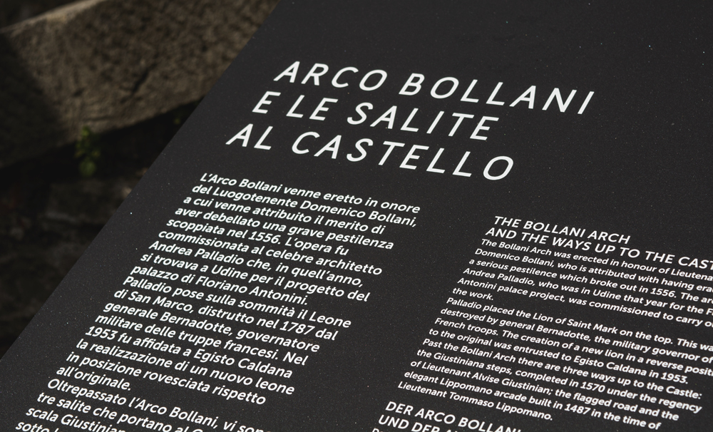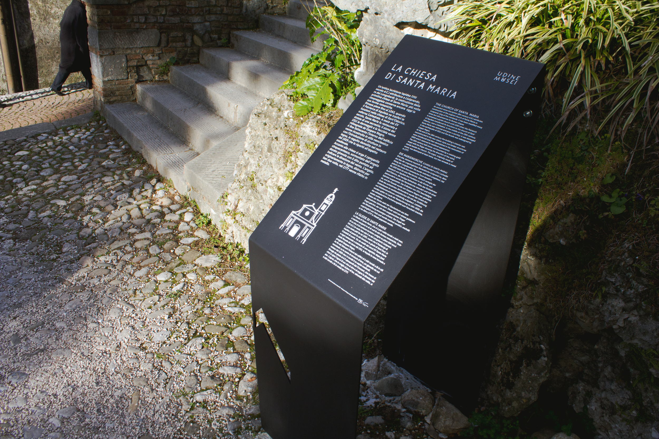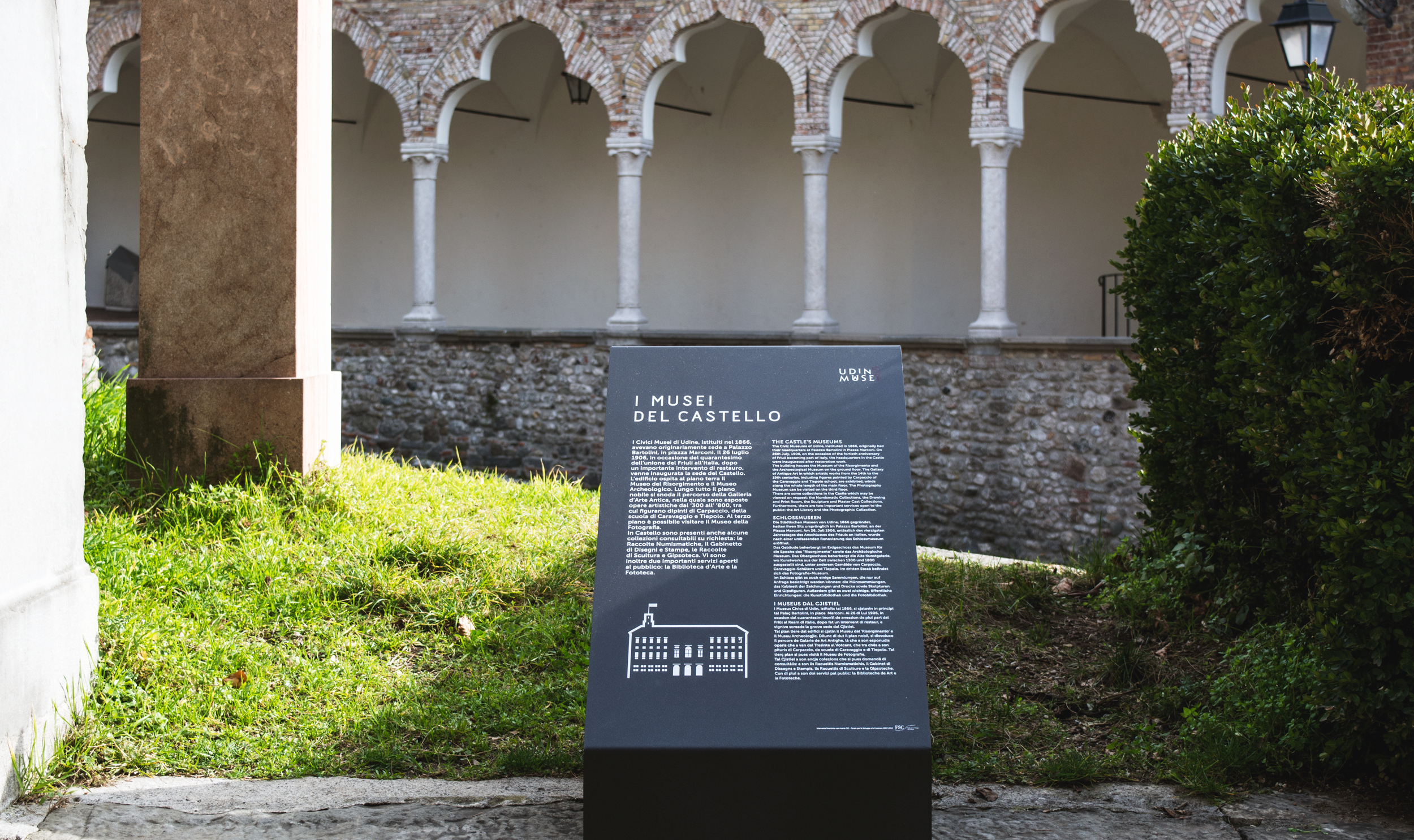 Ad Anthes è stata affidata la progettazione della segnaletica che accompagnano i visitatori nella scoperta del Colle del Castello di Udine.
