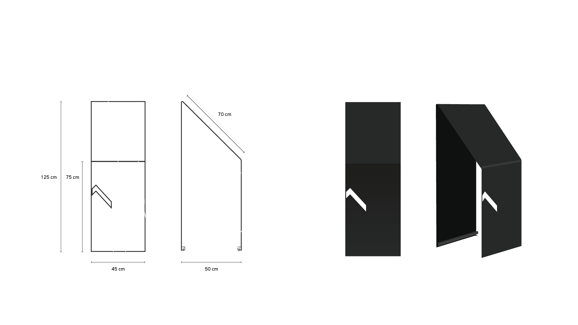 I pannelli, realizzati in un’unica lamiera di ferro verniciata a polvere, presentano una parte superiore inclinata e serigrafata, pronta a svelare storie e dettagli del patrimonio storico-artistico della città.