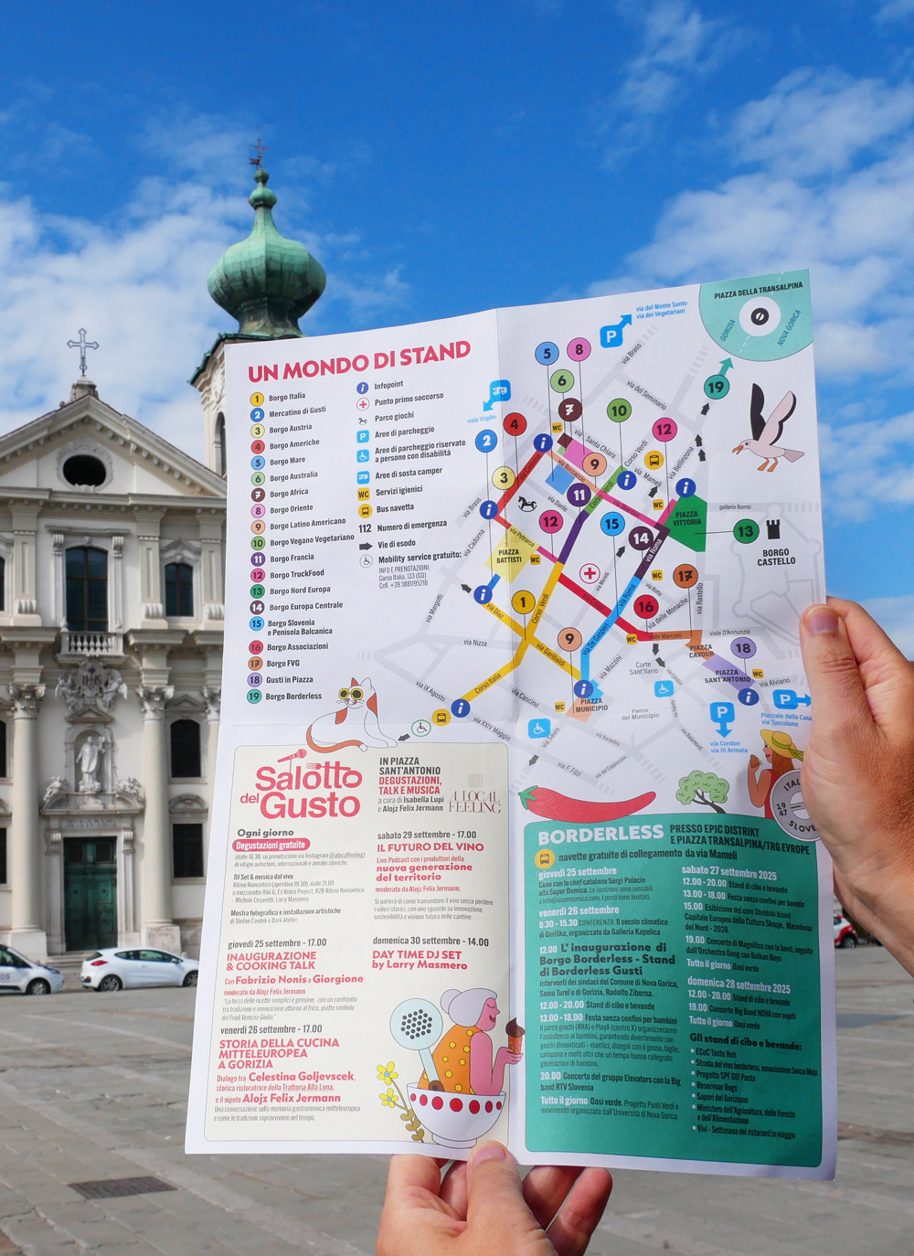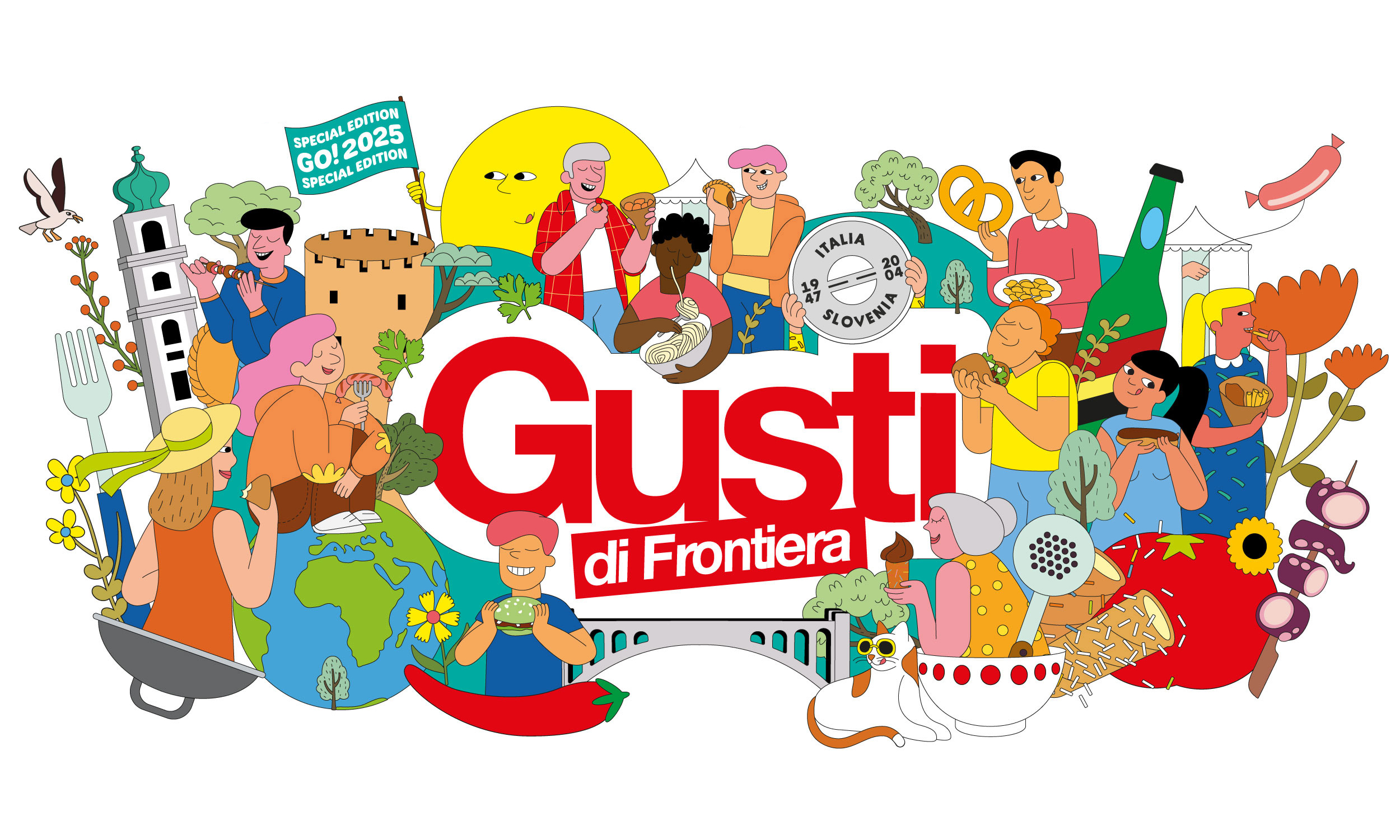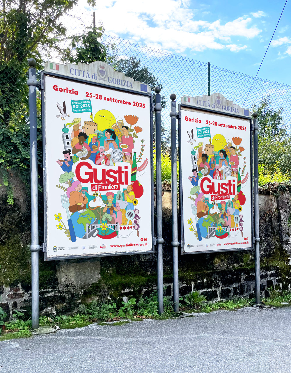 In occasione della Special Edition di Gusti di Frontiera 2025, abbiamo realizzato per il Comune di Gorizia un’illustrazione che celebra l’anima multiculturale e conviviale dell’evento, enfatizzando la sua vocazione internazionale e popolare.