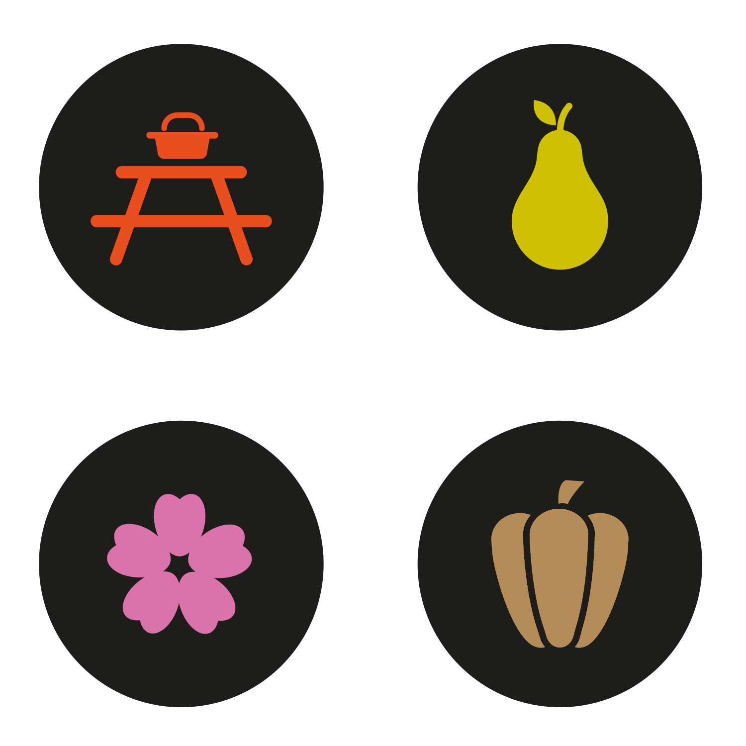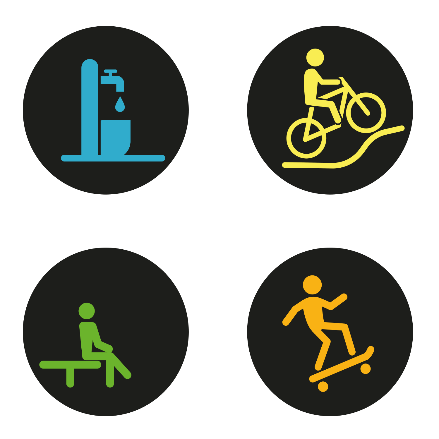 Il sistema iconico completa il progetto, creando una segnaletica coerente e armoniosa con il paesaggio circostante.