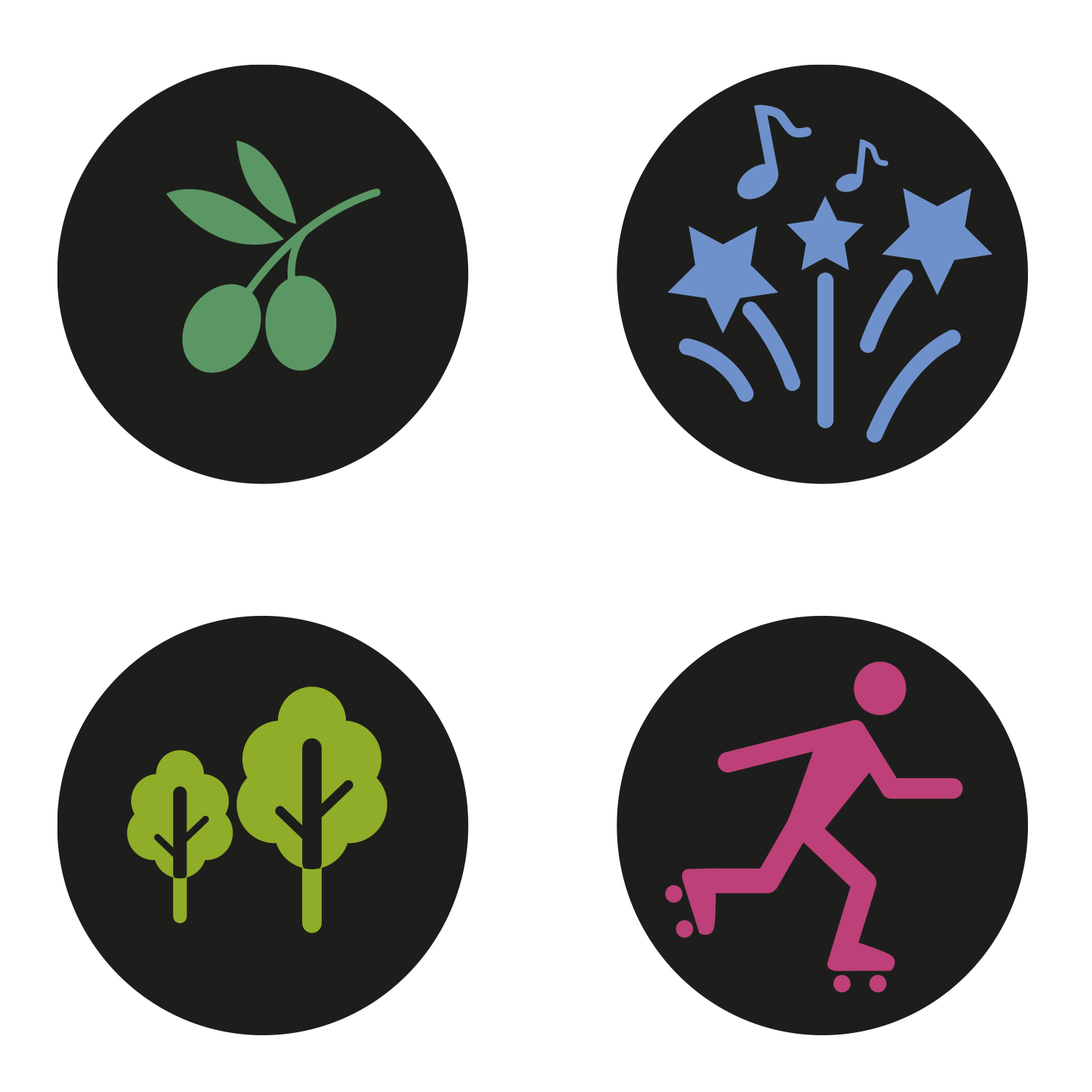 La mappa illustrata, una stilizzazione che rappresenta i principali punti d’interesse, accompagna il visitatore in un percorso chiaro e intuitivo, dove grafica e orientamento si fondono in un’unica esperienza visiva.